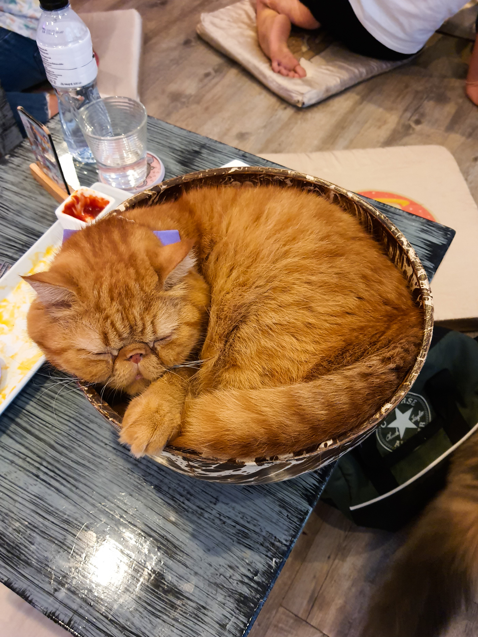 Sleepy cat in the bowl.